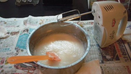 幸好,聰慧如我,即時拔掉了一根攪拌棒~接下來就相當順暢囉! (不過電攪器好重喔...)