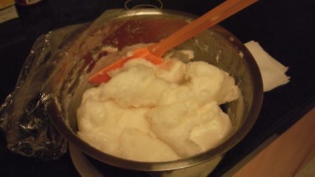 第一個小時,大約每15分鐘我就拿出來,翻攪皂糊