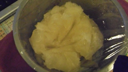 隔天一早打開電鍋一看~皂團果然很捧場地變成透明狀態嚕!